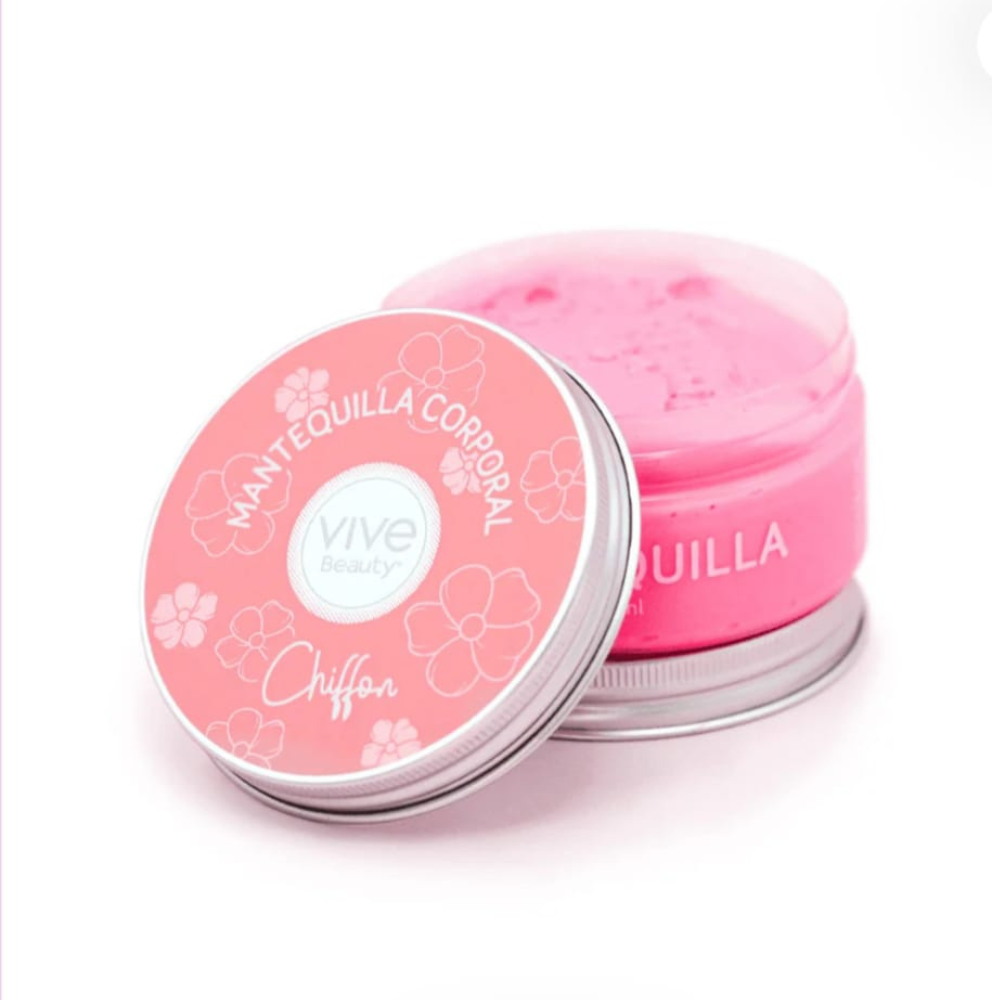 Descubre la suavidad de Mantequilla Chiffon, nuestra mantequilla corporal de rápida absorción con una textura ligera y aireada que se funde con tu piel. Su delicado aroma floral limpio envuelve el cuerpo con una sensación fresca y femenina, ideal para el cuidado diario.